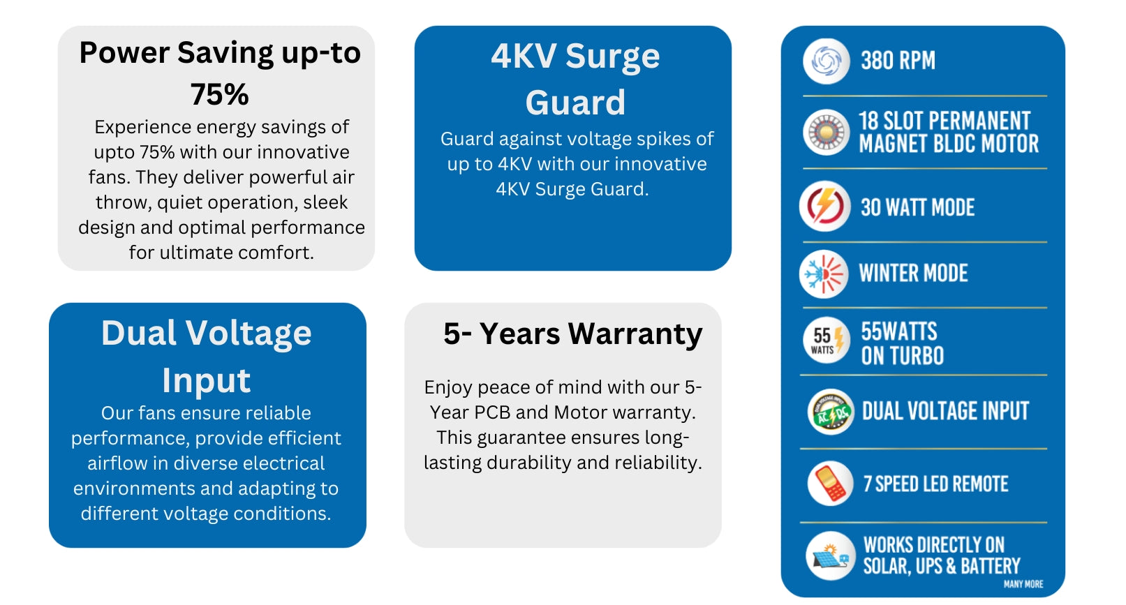 We bring You the prime AC/DC Series - a fan engineered for excellence, combining cutting-edge technology with superior air-flow. It is designed for those who seek uncompromising performance and the reliability of dual power sources.